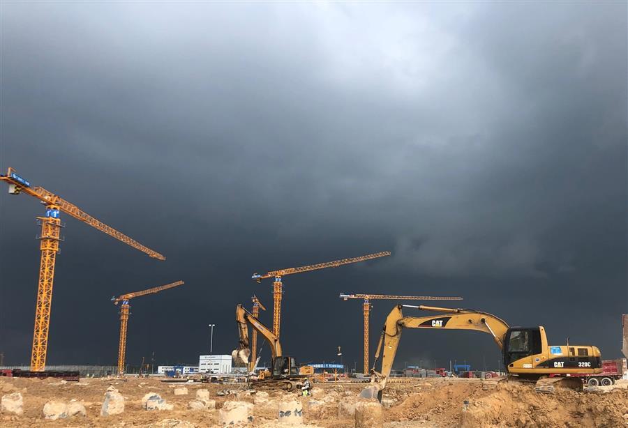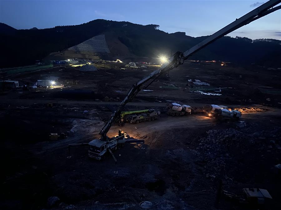静脉产业园项目工程车辆来来往往,挖掘机、泥头车、商砼车、压路机齐齐上阵。机器轰隆,灯火通明,项目施工昼夜抢工不停歇。