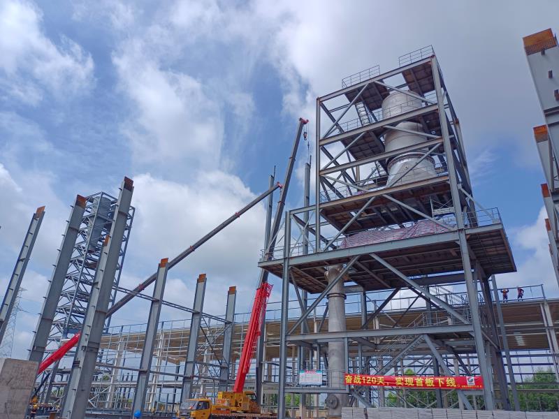 5月12日,由设备安装分公司承建的广西国旭东腾人造板有限公司年产35万立方米中高密度纤维板项目,顺利完成热磨间加长钢柱的吊装工作,标志着项目正式进入下一步设备安装施工阶段。