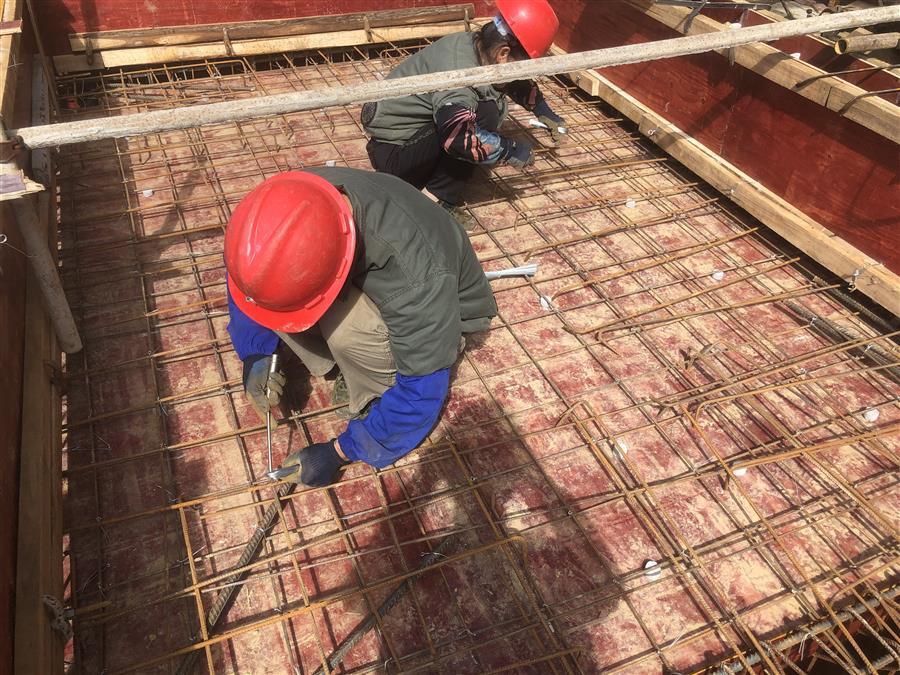 工人在绑扎钢筋