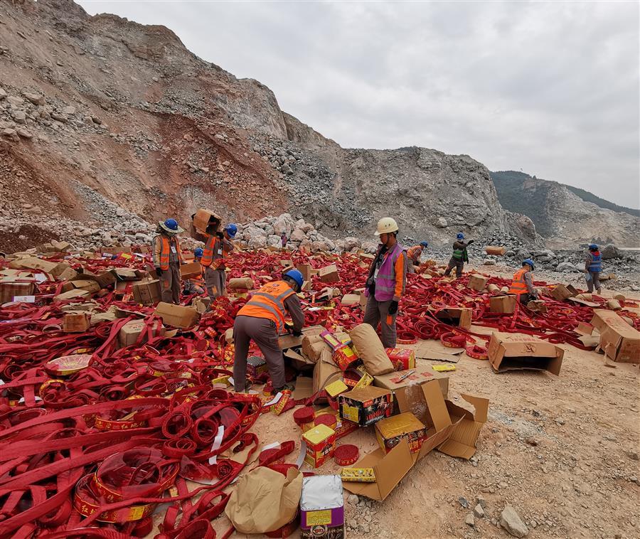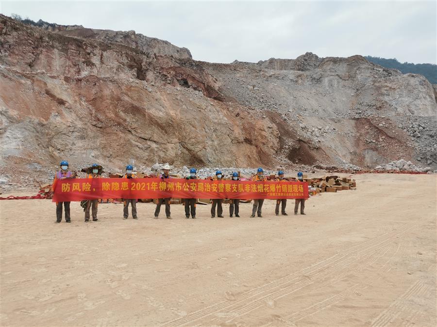 12月9日,第七分公司爆破工程公司受柳州市公安局治安警察支队委托,对一批非法销售、储存的烟花爆竹进行集中销毁。