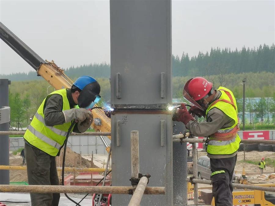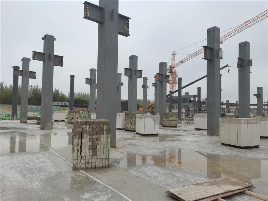 项目所在地受疫情影响较大,为统筹抓好项目疫情防控、安全生产、施工进度等工作,项目部严格落实疫情常态化防控措施,做好日常测体温、消毒等工作,并对项目进行统筹规划,根据“白+黑”“晴+雨”的天气情况,合理安排相应的施工任务,同时加强吊装机械设备的排班策划力度,合理安排穿插作业,确保工程进度如期完成。经过两个月的施工,目前项目正在进行第一层钢梁安装焊接和砌体结构砌筑、二层钢柱吊装安装等工序。