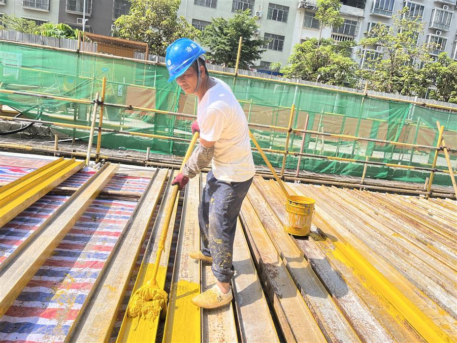 “我们的工人基本上每天早上6点钟就开始施工作业了。”项目经理介绍说,为了避开中午高温时段,项目部科学调整施工时间,工人上午11点下班,下午3点钟左右开始上班,并合理利用夜间气温低的时段进行施工,加班加点确保项目建设进度。目前该工程已累计完成产值1.06亿元,完成工程总量的23.16%。