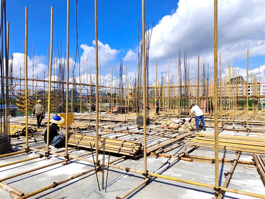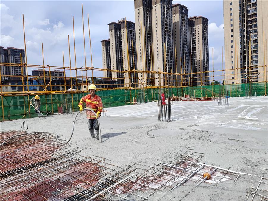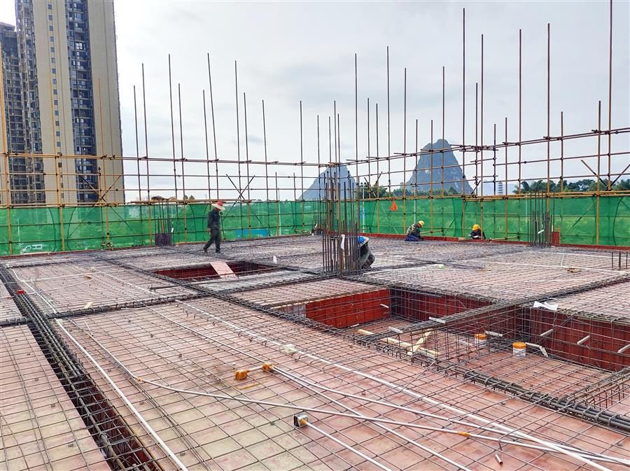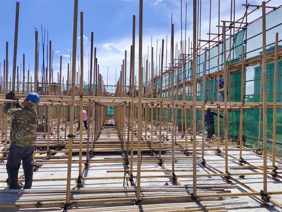 在项目现场,每天有50多名工人顶着高温,相互配合,有条不紊地进行钢筋加工、绑扎钢筋、混凝土浇筑等工作。为了赶工期,他们时常加班加点工作到深夜,同时还认真按照工艺标准逐条逐项落实每一项细节,严把工艺质量。
