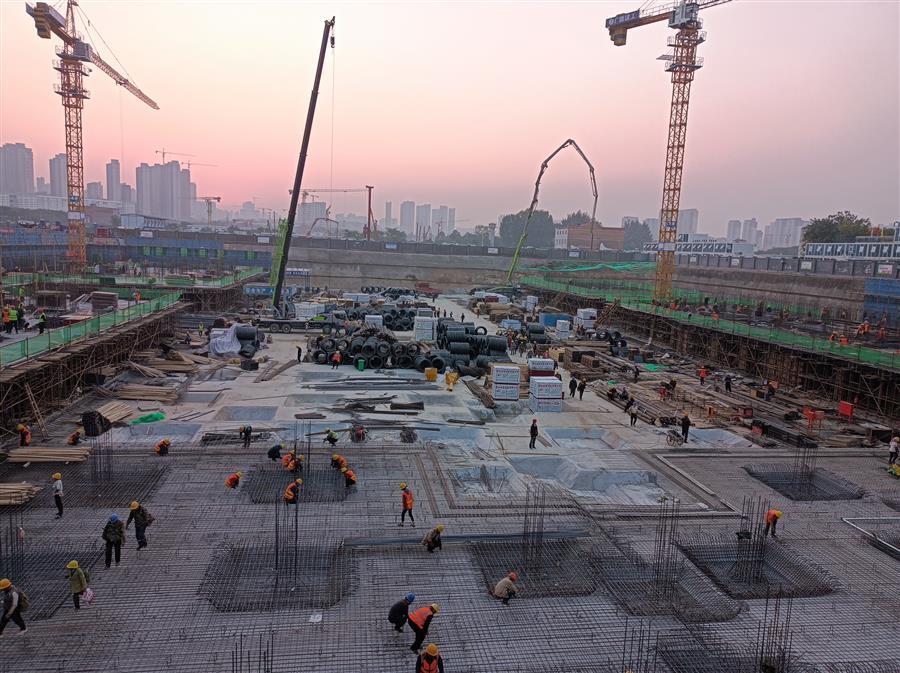为加快推进项目建设,项目部一手抓防疫,一手抓建设。在做好疫情防控的基础上增加作业人员、增加作业面,采取平面分区、分段流水交叉作业施工;加强各工序之间的有效衔接,充分利用施工面做到均衡施工;加大材料设备的投入,提前购置充足的机械设备,采取新材料、新技术减少耗材。项目每天进场的劳务人员达300余人次,有时单个施工区域就达40余人作业。项目管理人员团结协作、集体攻关,在施工现场日夜值守,吹响了“决战四季度”的冲锋号角。