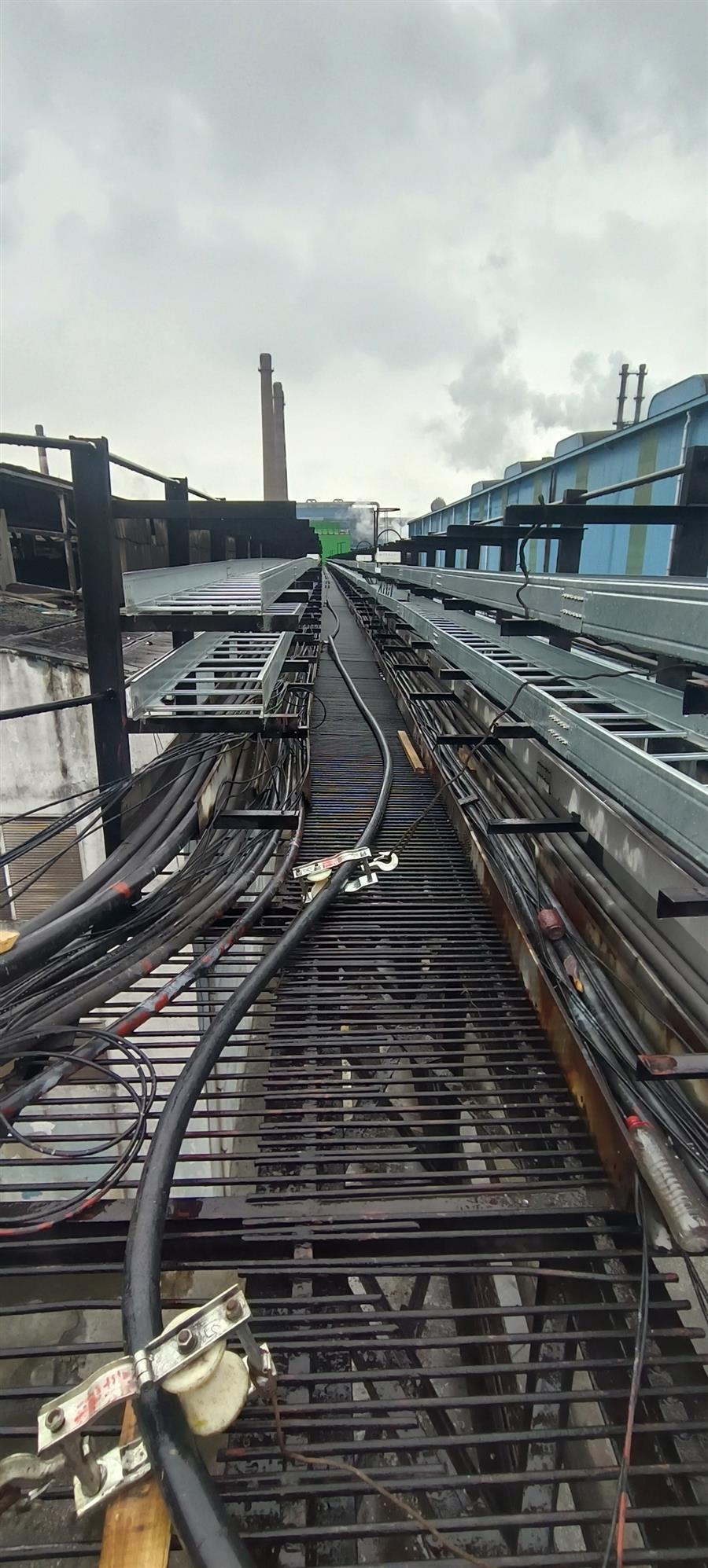 该项目位于柳钢厂区,施工既不能影响柳钢厂区道路通畅,又要赶进度,施工难度较大。同时,本项目敷设电缆总长59400米,电缆较长、较重,倒电缆需要使用专用设备,有的地方转弯还需要人力肩扛,把电缆运送到高空8米的桁架上。