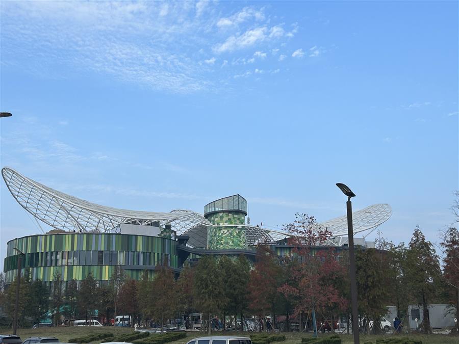 据悉,该项目位于江苏省东台市黄海森林公园内,由东区、西区及户外休息区三部分组成,总建筑面积约1.8万平方米,建筑高度22.77米,最大单跨跨度为45米。