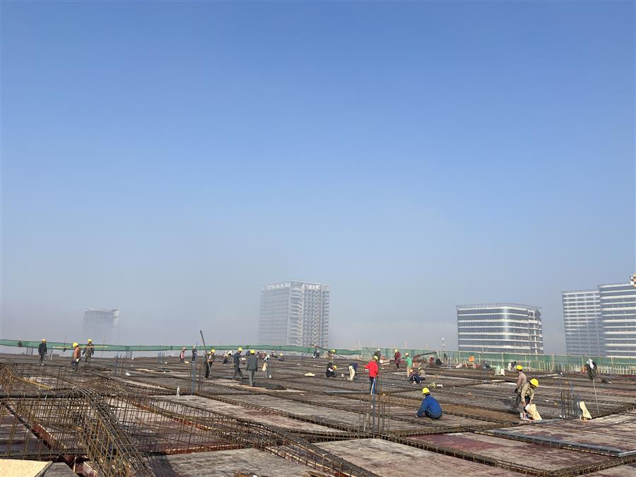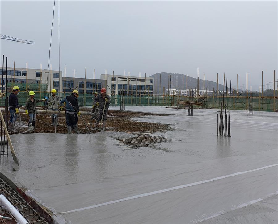 连日来,柳州市农副食品加工园项目(二期)A标工程项目部开足马力、全力加快推进项目建设。该项目总建筑面积6.8万平方米,目前1#标准厂房1-7轴主体结构封顶;3#标准厂房2层梁板砼浇筑完成。