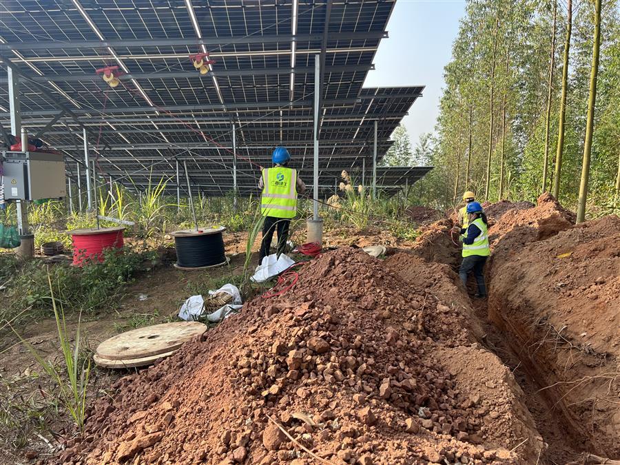 节后复工复产以来,项目接地网开挖敷设完成1235米,低压电缆敷设完成1285米,光伏专用电缆敷设完成14760米,围栏安装1030米。