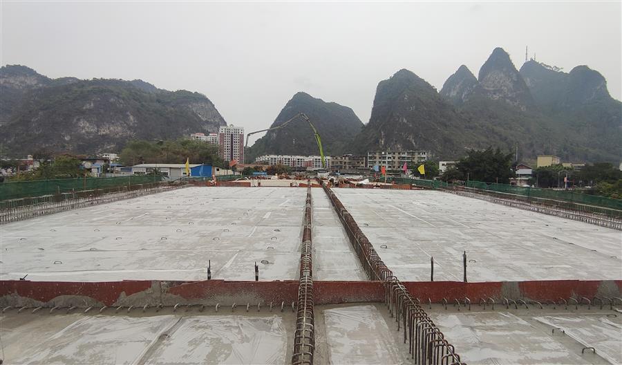 4月3日,冶建公司桂金分公司承建的河池市龙江六桥(辉乐桥)工程顺利完成拱上箱梁结构顶板混凝土浇筑施工任务,主体桥面实现全幅贯通。