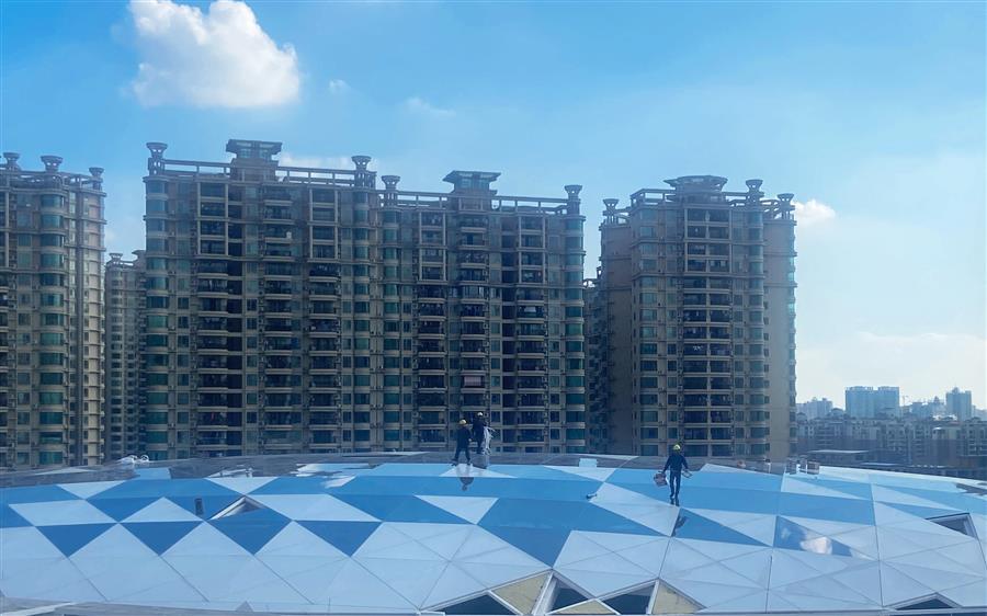 为避开高温时段作业,项目部倒排工期计划并及时根据现场情况更新安排,配足人、材、机等要素,做好后勤保障。虽然每天提早上班下午推迟上班,但是也难逃滚滚热浪,在施工现场施工人员顶着高温“烤”验,有条不紊地进行各项施工作业,全力推进项目建设。目前,该工程项目屋面、建筑幕墙安装、屋面钢结构安装已完成95%以上,主要进行电气安装及地下室工程施工。
