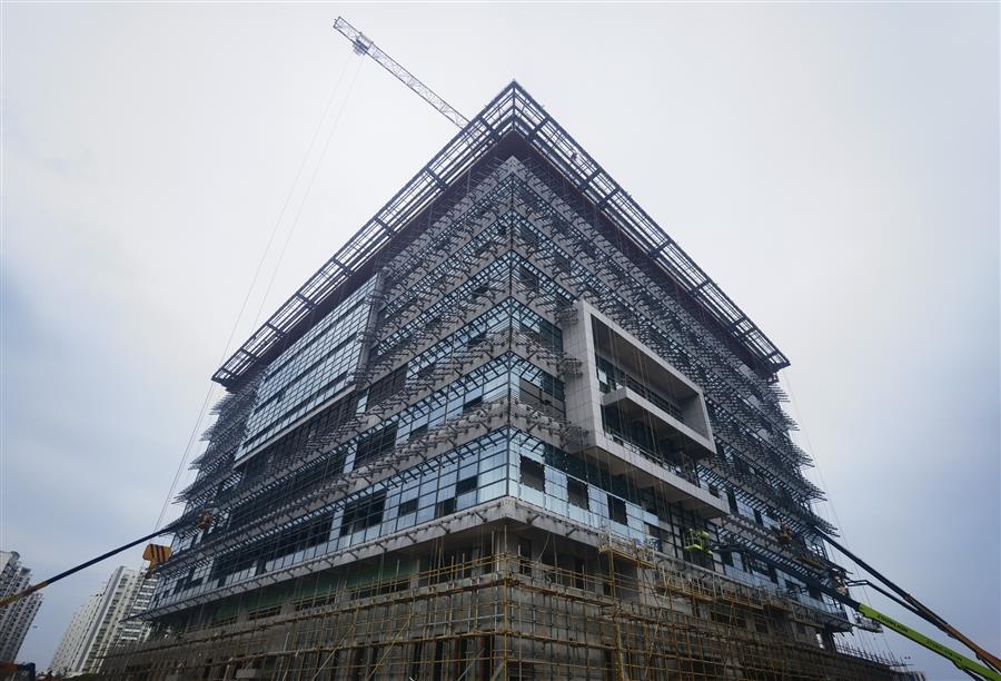 项目位于柳州市柳东新区,合同金额5.3亿元,总用地面积约23.6万平方米,一期工程总建筑面积约15.2万平方米,主要建设内容包括新建实训楼、食堂、宿舍、室外运动场等设施。项目2022年2月正式动工以来,为保证项目建设高质量高效率推进,在确保安全生产的前提下,项目部紧盯各项节点目标,制定科学合理的施工方案,倒排工期、挂图作战,加强现场人材机的投入,扎实有序地推进项目建设进度。截至7月31日,项目总体施工进度完成80%,水电施工完成85%,消防系统完成80%,装饰装修完成85%,累计完成产值4.82亿元。