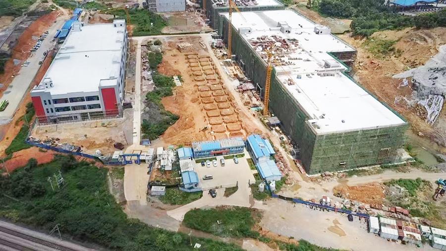 截至目前,项目累计完成产值1.1亿元,完成工程造价的48%。1#标准厂房屋面、外墙涂料、消防喷淋管及给排水管安装已完成,铝合金窗玻璃安装完成70%;2#标准厂房进行桩基础施工;5#标准厂房1~8轴角E~J轴框架结构已经完成、9~13轴砌体工程基本完成、14~27轴内外墙抹灰已完成、铝合金窗框、水电消防开始安装;13#甲类库房完成了框架结构封顶。