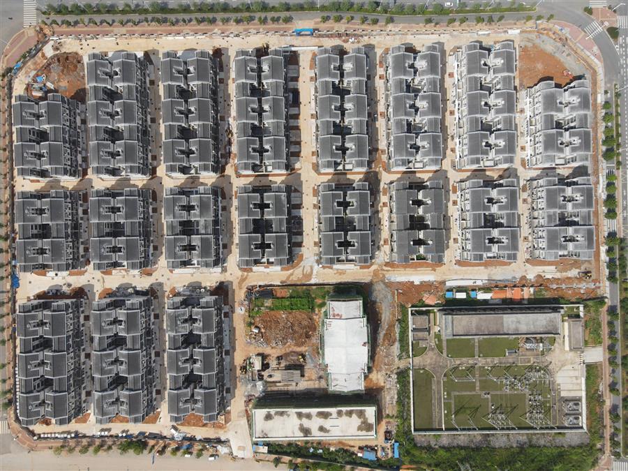 鹿寨县城南新区城中村改造项目设计-采购-施工(EPC)总承包项目共计36栋住宅楼,分为A、B两个地块,主体结构为异形柱框架结构。为加快项目建设进度,确保按时交付,项目部周密部署,挂图作战,不断强化时间意识,充分发扬“5+2”“白加黑”连续作战精神,争分夺秒,大干快上,高效推进项目建设进度。目前,A地块19栋住宅楼室内装饰装修已全部完成,在进行室外工程收尾。