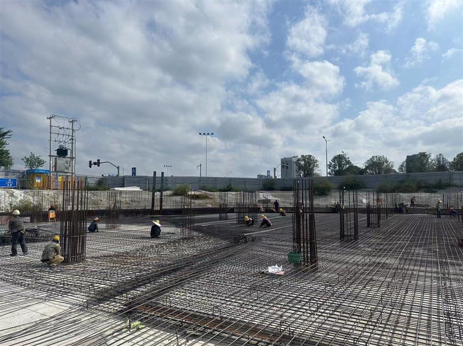 目前,项目塔1区域完成地下室顶板浇筑;塔2区域完成防水板钢筋绑扎;塔3区域防水板钢筋完成30%;塔1剩余区域完成基础顶-防水板短柱浇筑;其他中庭区域完成98.77米大开挖。