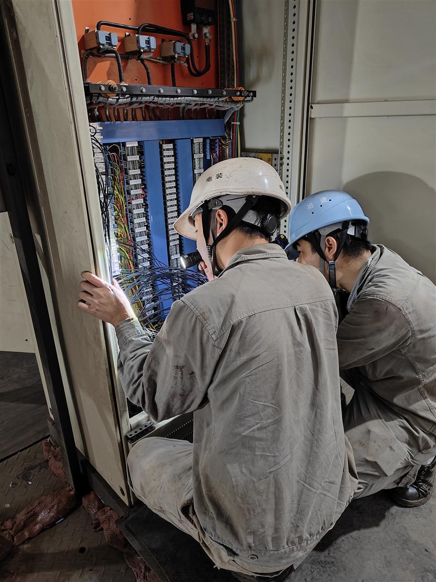 柳钢烧结厂电气设备吨产品结算维保检修工程各工段员工坚守岗位,保进度、争节点,有条不紊地进行维保检修等各项工作。