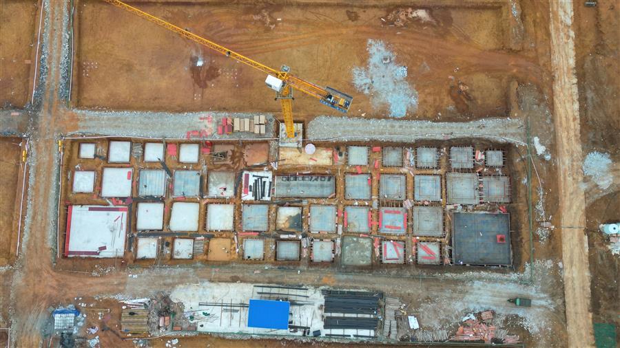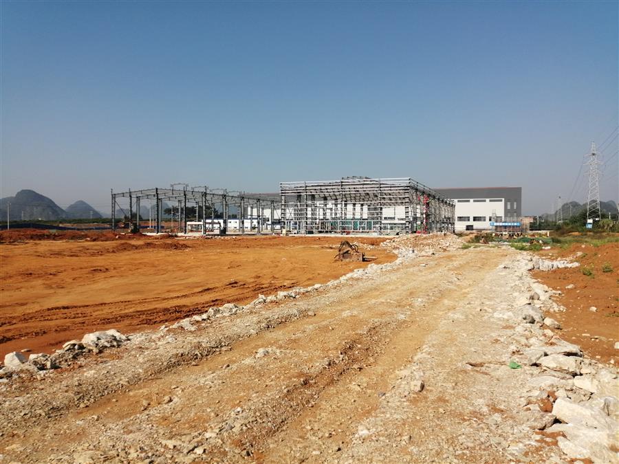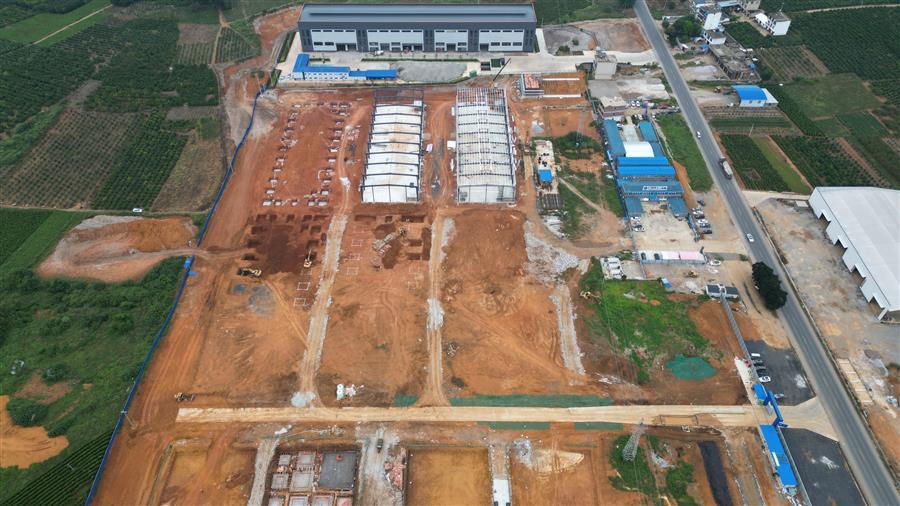 目前,该项目设备房消防水池外架搭设、模板安装已完成,4号厂房侧面檩条安装完成,5号厂房屋面檩条安装完成50%,6号楼基础承台已完成,4号楼地基处理注浆完成70%等。