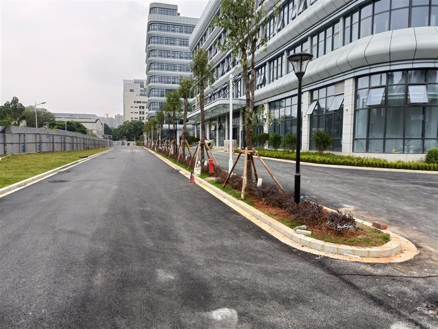在柳钢新门诊大楼之景观绿化及标识工程项目,项目管理团队赶进度、抢工期,组织施工队伍突击绿化种植、消防道路沥青层施工,在合同工期节点内完成合同内施工内容,获得业主单位的好评。