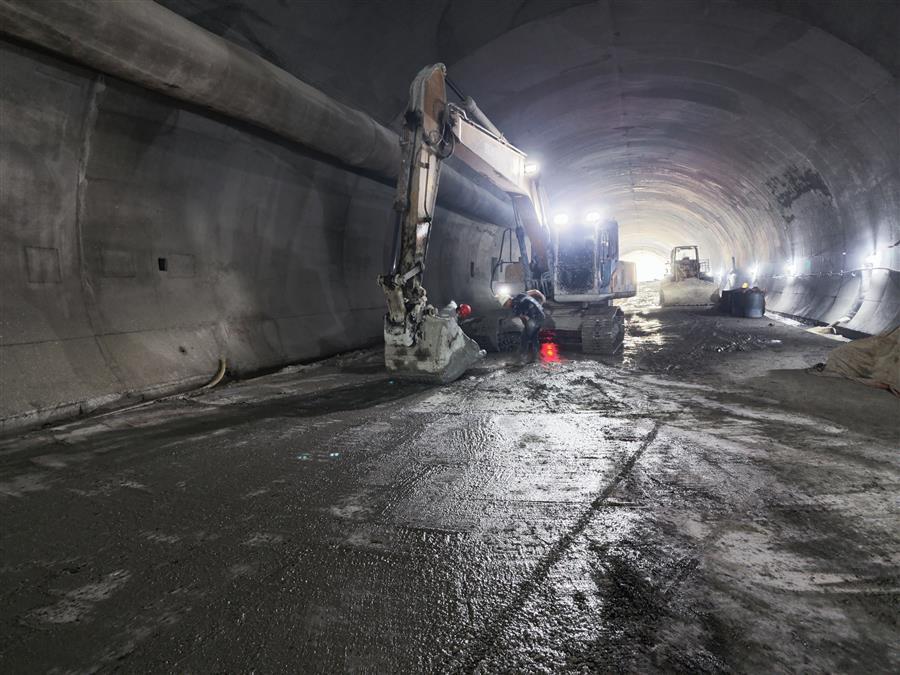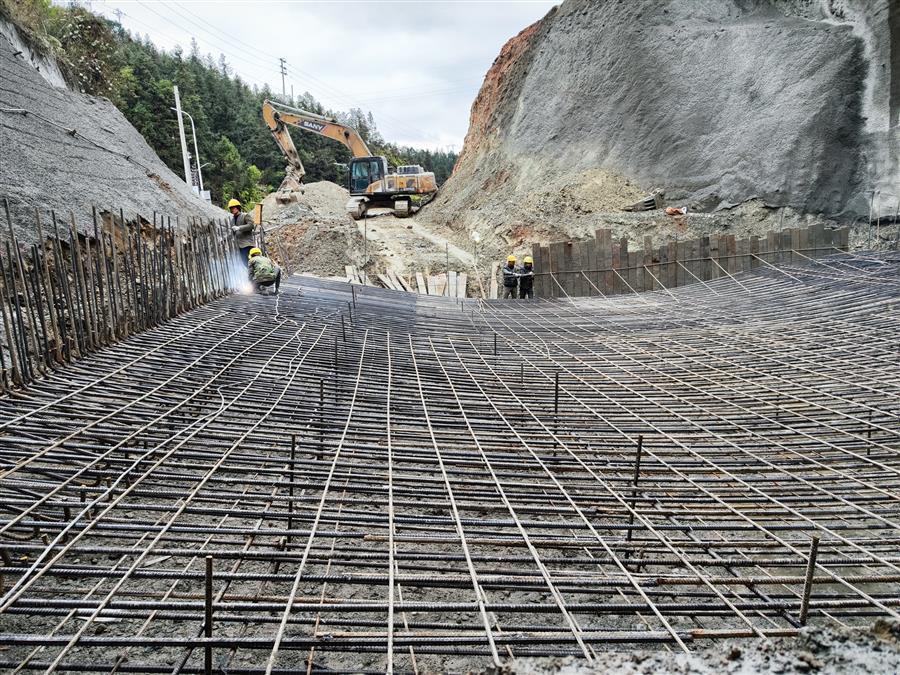 在施工现场,机器轰鸣,挖掘机正在对隧道明洞部分的土方进行开挖,出渣车有序作业外运渣土;工人们正有条不紊地焊接、搭建地连墙钢筋笼;在隧道深处,一台挖掘机在操作人员的操控下,正挥动着“手臂”,配合着工人在对隧道路面做清理。“为加快项目施工进度,我们采取人员倒班、设备不停,白天晚上不间断施工。”项目经理介绍说,目前隧道工程已全面贯通,争取在春节前完成仰拱和墙供二衬砼浇筑。
