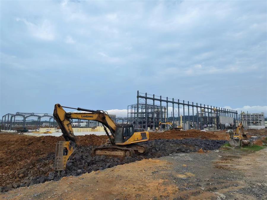 罗城硅晶新材料研发开发制造一体化项目(一期)施工现场,近100人的施工人员在多个工作面同时开展施工,施工现场机声隆隆,项目管理团队与现场施工人员节日不放假、不打烊,按照施工进度计划,全员坚守岗位,齐心协力抢抓施工黄金期,加快项目建设进度。该项目是集办公生活生产一体化的产业园,总建筑面积约6万平方米。项目现处于钢结构施工、设备安装阶段。