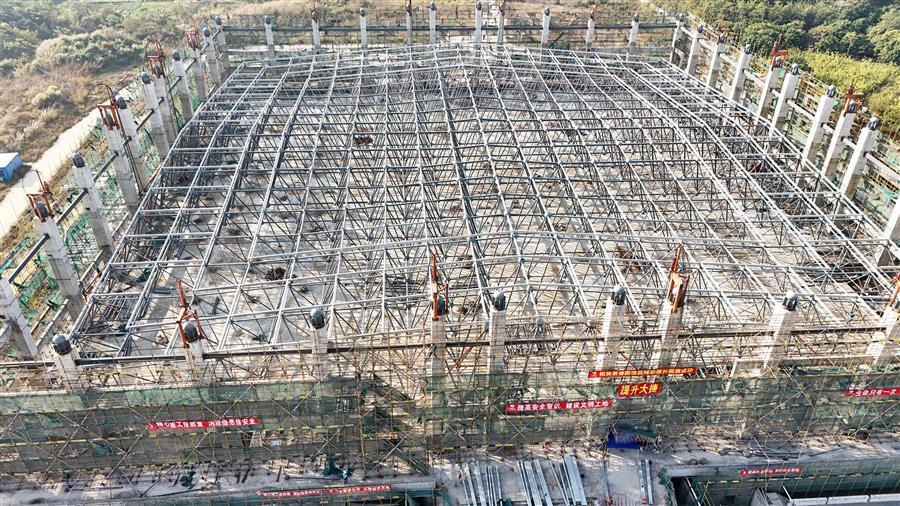 12月24日上午,冶建广东公司项目钢结构网架提升至设计标高,标志着该项目一个重要关键节点目标顺利实现,为下一步项目建设打下坚实基础。