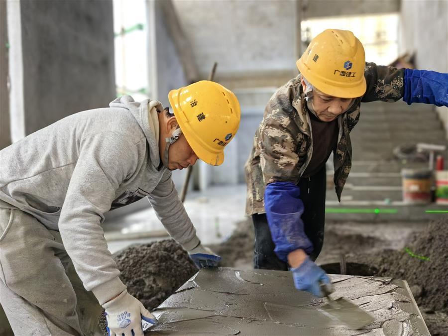 目前,项目已经基本完成主体结构施工,施工重点正在稳步向装饰装修阶段转移,逐步推进砌体砌筑、外墙抹灰、室内腻子喷涂、水电安装、消防安装、地砖铺贴等工序施工。