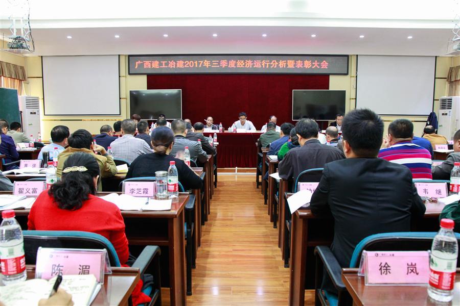 10月25日,公司2017年三季度经济运行分析暨表彰大会在四楼大会议室召开。公司总经理、党委副书记欧志永在会上作重要讲话,集团公司第四监事会副主席刘国江,公司领导张济璜、赖海标、唐峰、周善学、韦桂华出席会议。会议由公司副总经理、总工程师廖立波主持。