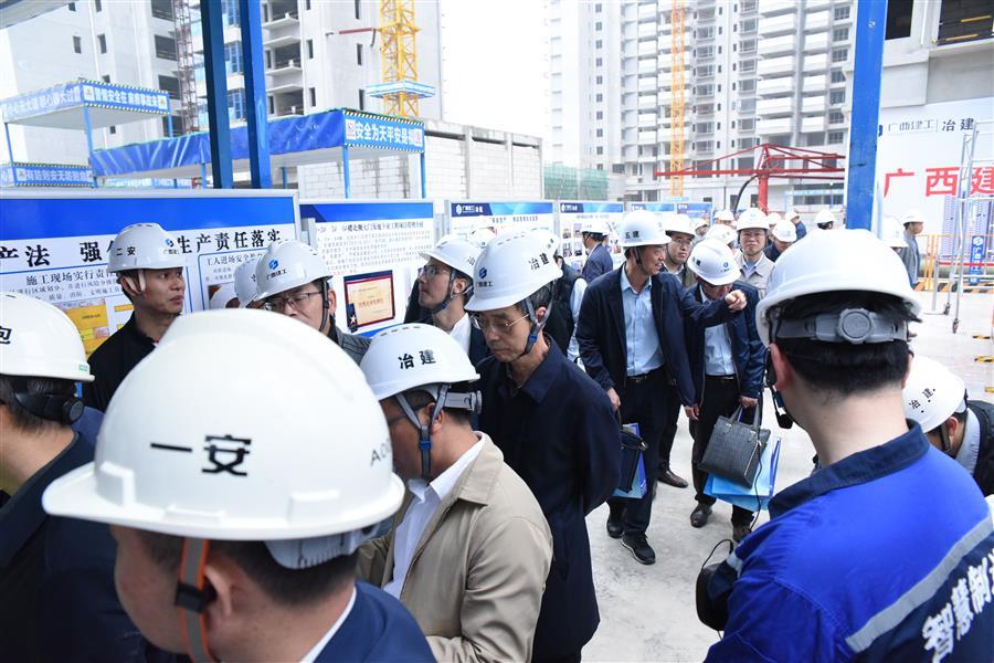 春雨润邕,绿意葱茏。4月10日,集团公司2023年第二季度安全生产工作会议暨质量安全标准化现场观摩会,在冶建公司桂鸿分公司施工的北投时代(二期)项目举行。集团公司总经理、党委副书记、董事罗涛,副总经理陈礼松,总经理助理、企业管理部总经理、市场经营部总经理刘新宁,集团公司各子公司负责人及相关人员近300人参加了此次观摩会。
