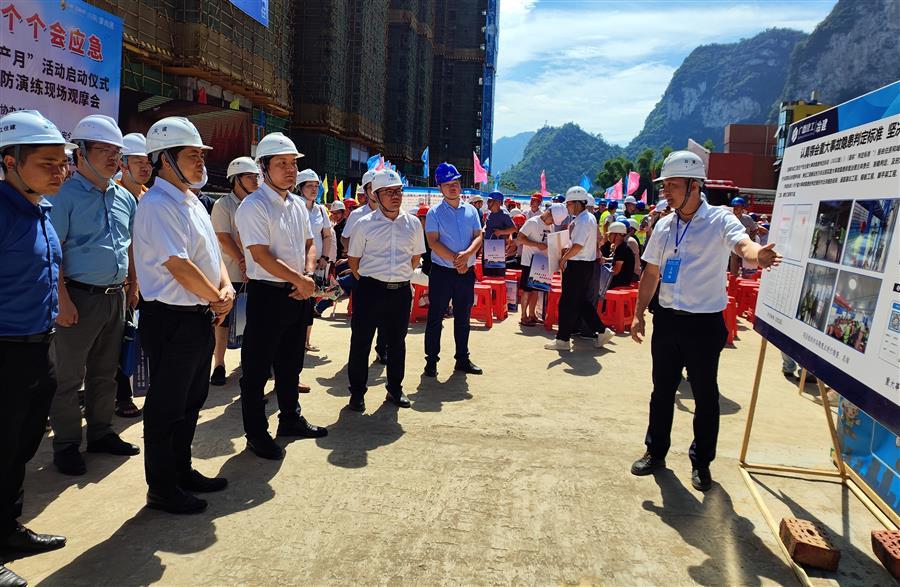 6月14日,河池市2023年“安全生产月”活动启动仪式暨质量安全标准化、消防演练现场观摩会在冶建公司桂金分公司承建的河池•澳门国际城四期项目部举办。河池市住房和城乡建设局党组成员、副局长韦鹏致辞并宣布“安全生产月”活动启动,冶建公司总经理、党委副书记蒙胜益参加并讲话。观摩会由河池市建设工程质量安全监督站副站长覃安纳主持。