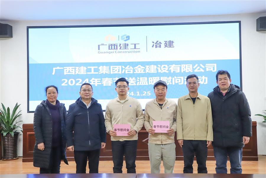 迎新春,送祝福,1月25日,冶建公司党委书记、董事长覃振华走访慰问离休干部董德和,基础分公司困难员工江龙威、黄积军为他们送去组织的亲切关怀,并送上慰问金和新春的祝福。