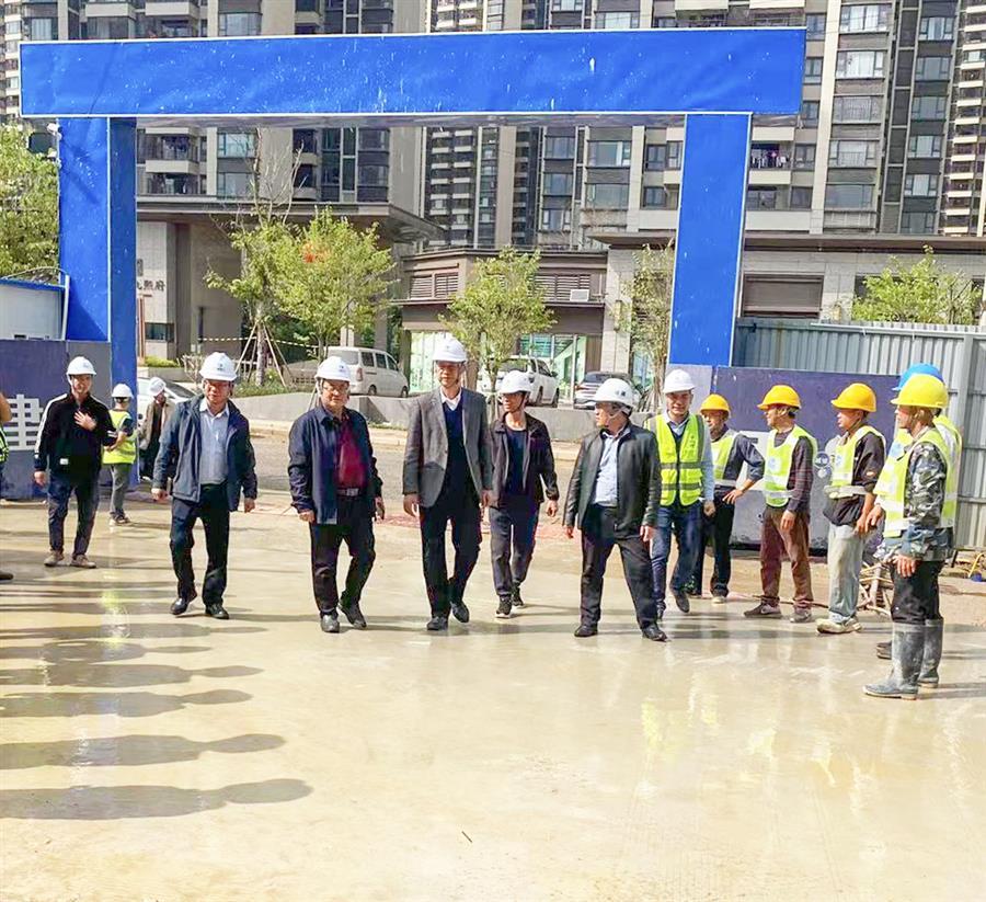 在听取分公司及项目部的汇报后,何勇深入项目施工现场,认真查看了落地式脚手架、临时用电、模板支架、安全文明施工等情况,并对项目的建设进度表示肯定。