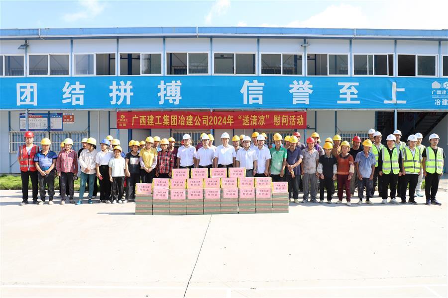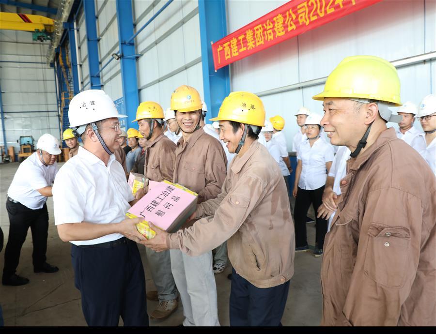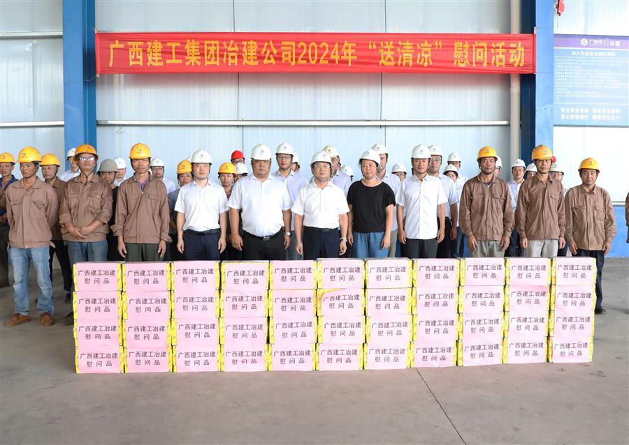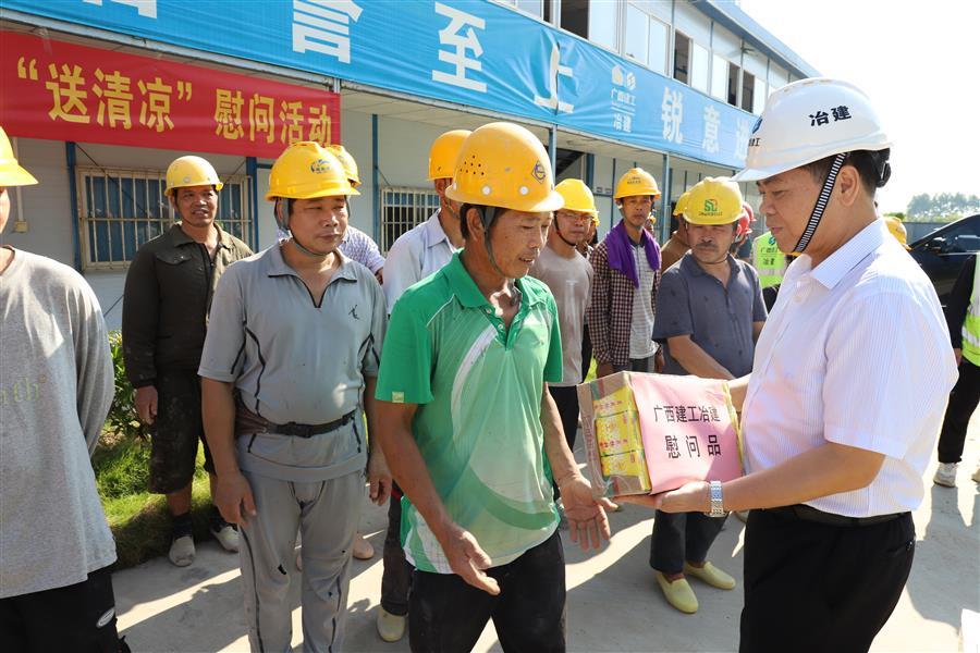 8月7日,冶建公司董事长、党委书记覃振华,总经理、党委副书记蒙胜益分别到压力容器制造厂、柳州市柳东新区明德小学项目开展“送清凉”慰问活动。
