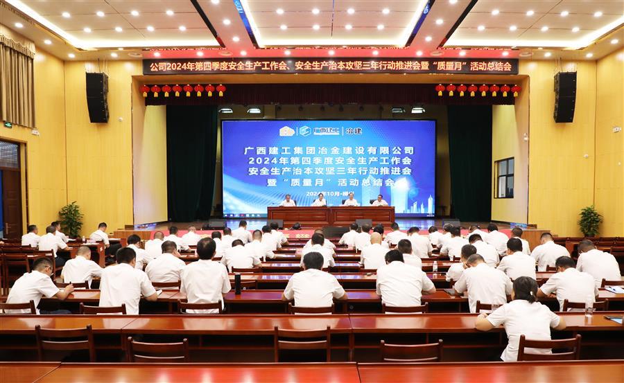 10月10日,冶建公司2024年第四季度安全生产工作会、安全生产治本攻坚三年行动推进会暨“质量月”活动总结会在礼堂召开。公司总经理、党委副书记蒙胜益参加并讲话,副总经理、总工程师廖立波,副总经理何勇参加,代安全总监韦克雪主持。