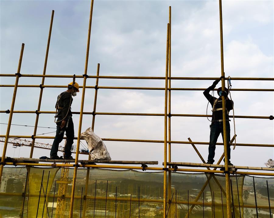 在中房绿景二期项目现场,机器轰鸣,不同工种的工人正在紧张有序开工,一幅热火朝天的景象替代了往日的寂静。