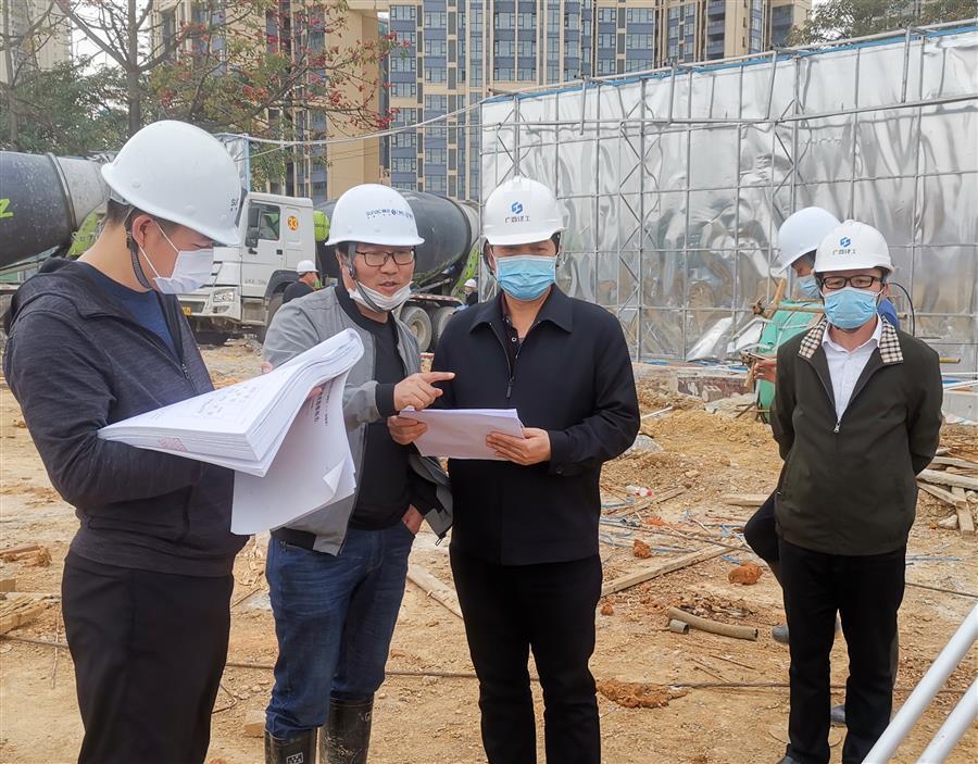 4月13日下午,公司党委副书记、总经理蒙胜益到融创江南林语1#至3#、5#至11#、21#、22#楼及地下室工程施工现场,与其他专家共同探讨解决该项目桩基施工问题。