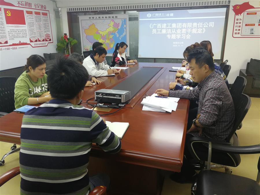 近日,桂海分公司召开员工会议,组织学习《广西建工集团有限责任公司员工廉洁从业若干规定》(以下简称《规定》)。