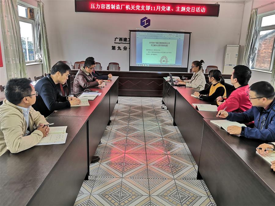 近日,压力容器制造厂机关党支部组织全体党员学习《广西建工集团有限责任公司员工廉洁从业若干规定》(以下简称《规定》)。