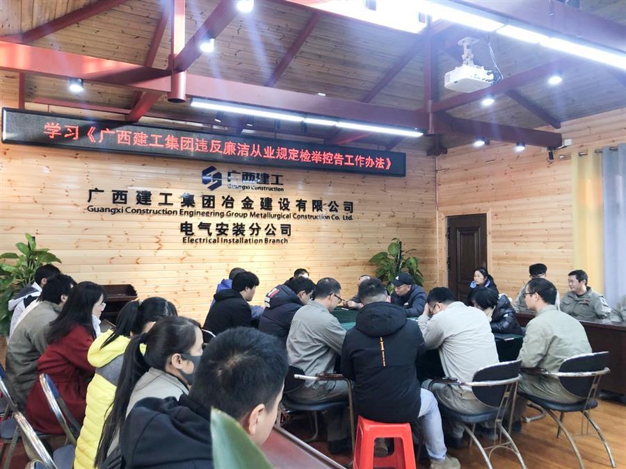 11月30日上午,电气安装分公司召开会议,组织学习《广西建工集团违反廉洁从业规定检举控告工作办法》(以下简称《办法》)。
