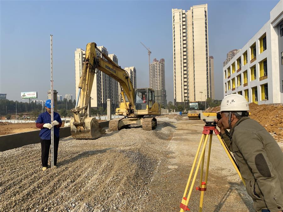 很快,他的心情平复下来,依旧像往常一样,穿好工作装、戴好安全帽走进柳州市阳和第三幼儿园的施工现场,开始忙碌的一天,放线、测量……