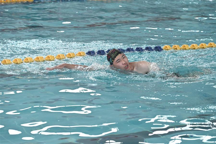 决赛环节,运动员们纷纷向最后的胜利发起冲刺,泳道内大家激情澎湃、斗志昂扬,泳池旁啦啦队的加油助威声此起彼伏,比赛的气氛被推至高潮。