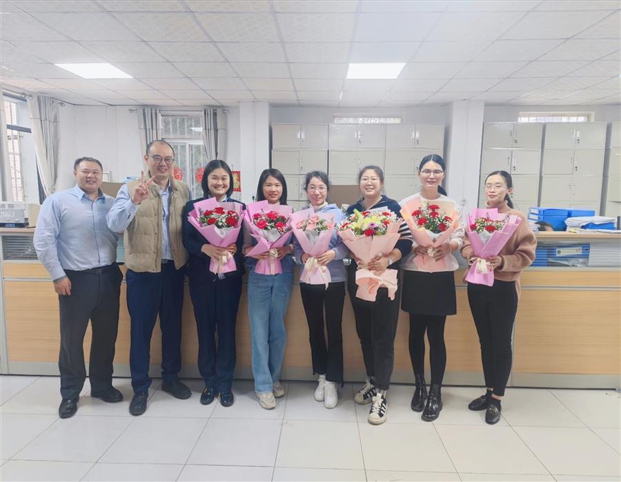 3月7日,柳州市区农村信用合作联社潭中分社给冶建公司资金管理中心女员工送上鲜花和节日祝福。