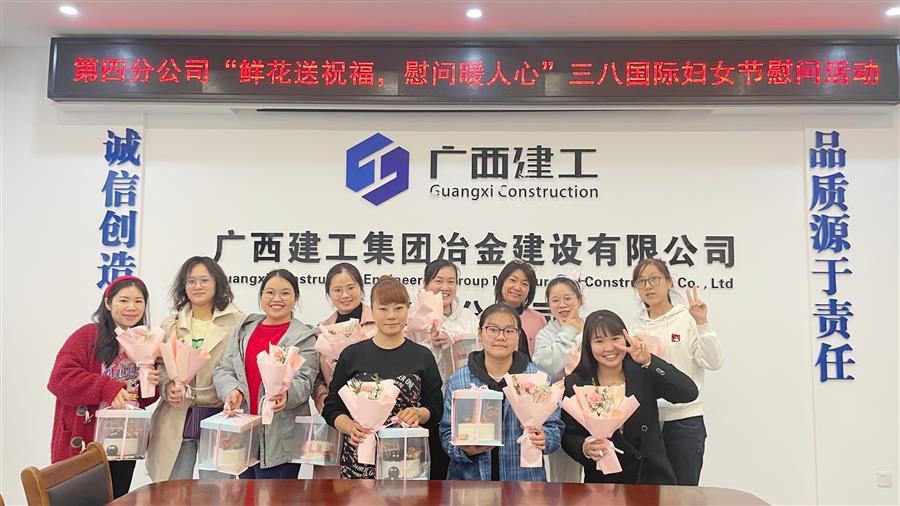 3月8日,冶建公司第四分公司开展“鲜花送巾帼 慰问暖人心”活动,为女员工送上真挚的节日祝福和亲切的慰问,并为每一位女员工送上精美礼品和代表热情、温馨、感谢的康乃馨花束,感谢她们为公司发展作出的贡献。