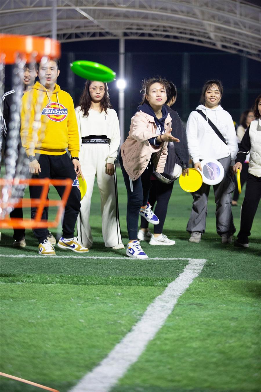 活动邀请了专业飞盘教练对参加活动的员工进行飞盘运动基础培训,在进行简单的热身运动后,大家在教练的带领下,学习了飞盘的接传盘技巧、攻防要点、比赛规则等,并进行分组练习和比赛。