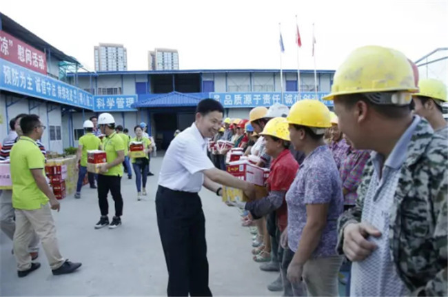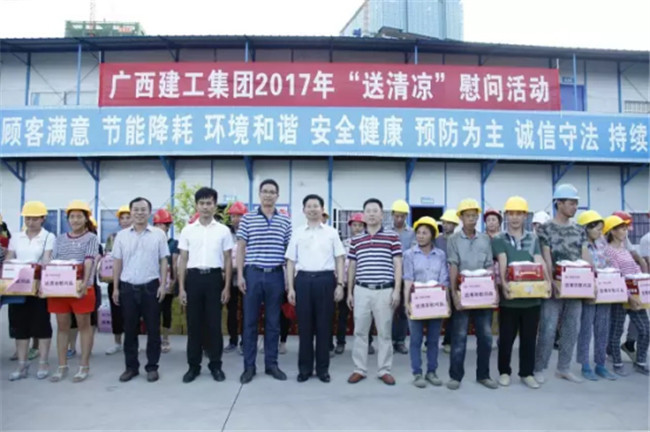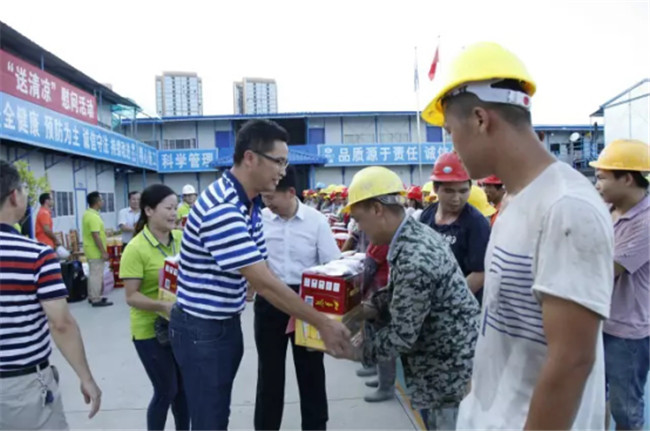 柳州市高新区科技园专家公寓楼工程由我司桂华分公司承建。8月7日下午,广西建工集团副总经理侯立林冒着高温酷暑,专程从南宁前来项目建设现场给一线职工和农民工“送清凉”,公司领导欧志永、赖海标、廖立波参加活动。130多份价值9000多元的慰问品,在十多分钟的时间里,全部发放完毕。