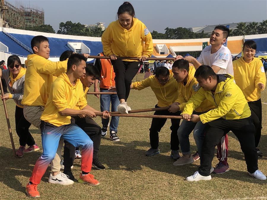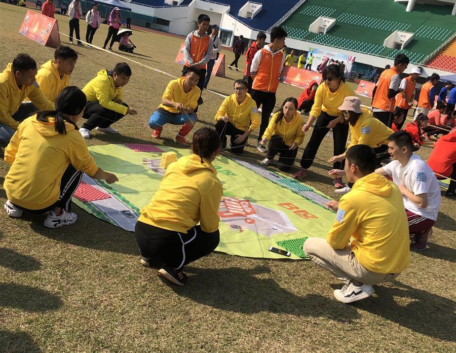 此次趣味运动会由柳州市总工会组织,活动共为五个项目分别为迷宫逃脱、步步为赢、毛毛虫竞赛、合力建塔、趣味投篮。